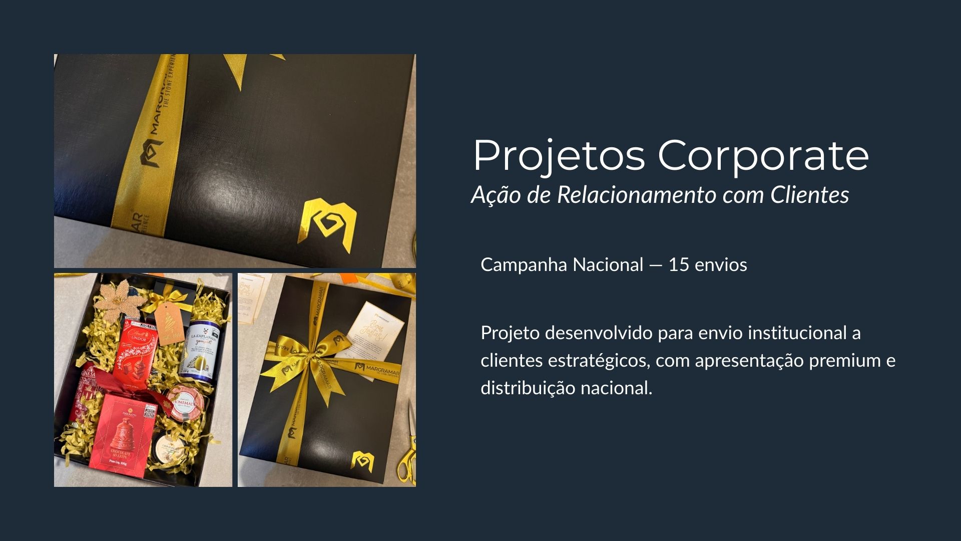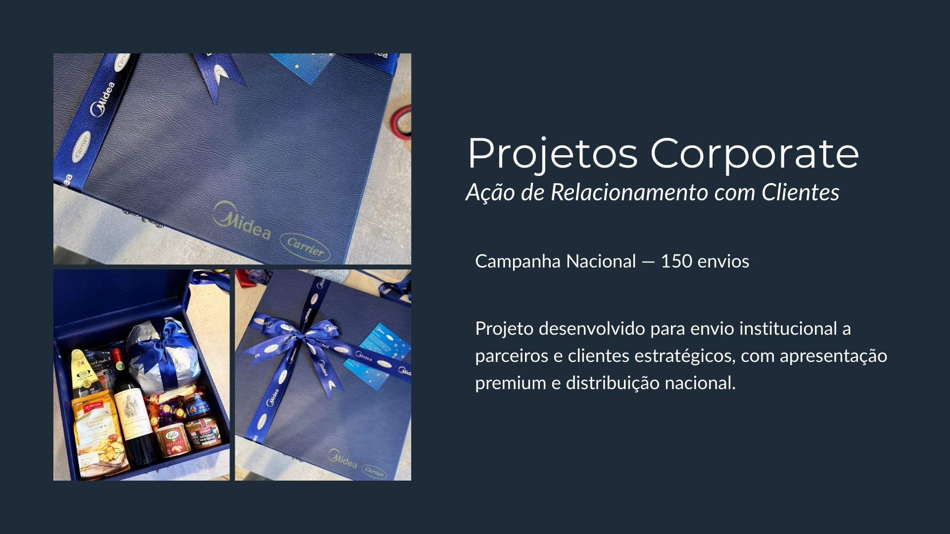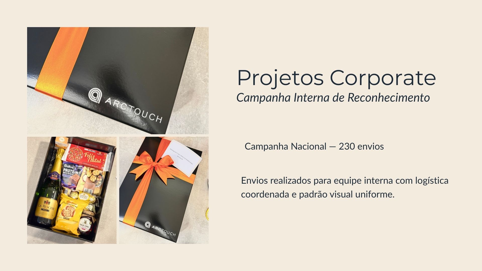 Ao longo da nossa trajetória, atendemos empresas que buscam soluções confiáveis para reconhecimento, relacionamento e posicionamento institucional por meio de presentes estruturados.